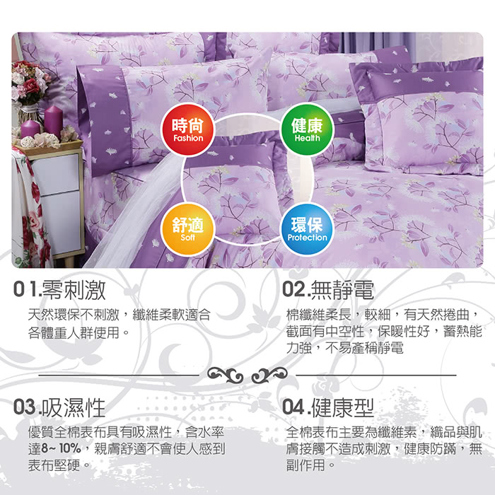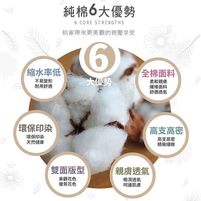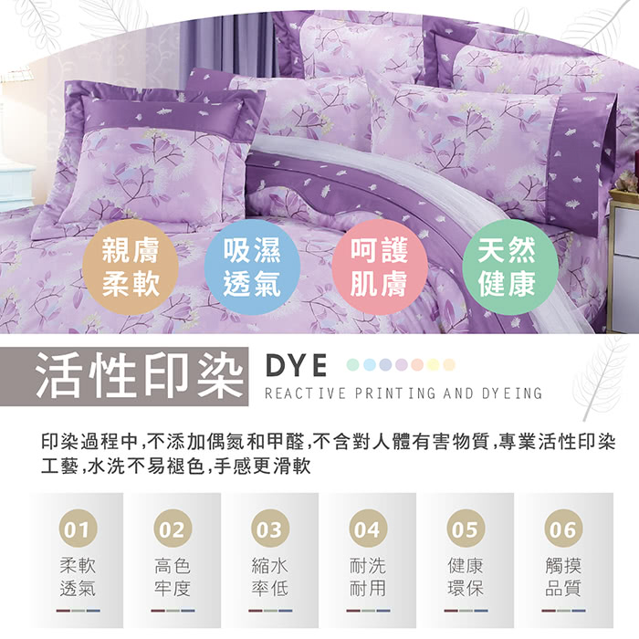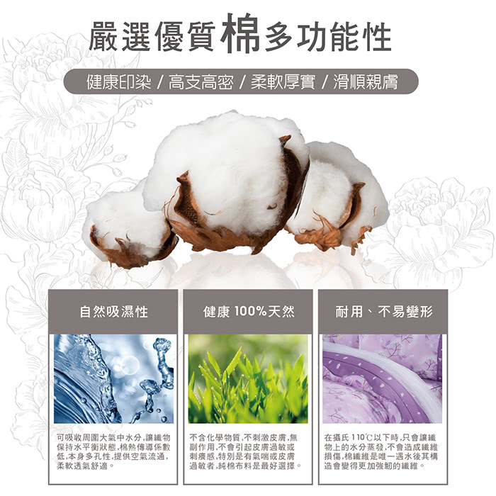 精心挑選設計的花色,色澤穩定經久耐洗品味與質感兼具環保健康的寢具