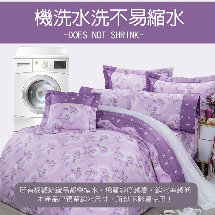 台灣製精梳棉床罩組採用100%絲光精梳棉布,經多重絲光及壓光後處理製成。